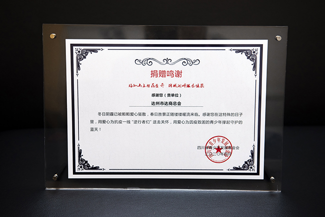 近日, 收到四川省青年发展基金会送来的感谢信和鸣谢证书,成都达州商会及联席..