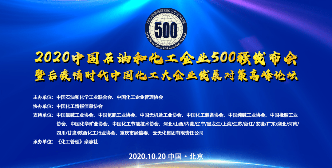 10月20日,2020中国石油和化工企业500强发布会暨后疫情时代化工大企业发展高峰论坛网络视频会议在线上召开。会议发布了2020中国石油和化工企业500强排行榜和分行业百强企业排行榜;发布了2020年中国石油和化工行业发展指数及应用;发布了2019年中国石油和化工企业500强发展研究报告;举办了行业发展论坛和企业家论坛。中国石油化工集团有限公司、中国石油天然气集团有限公司、中国海洋石油集团有限公司3家企业位列榜单前三名。