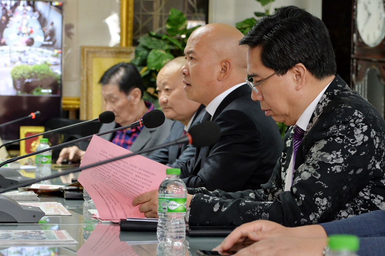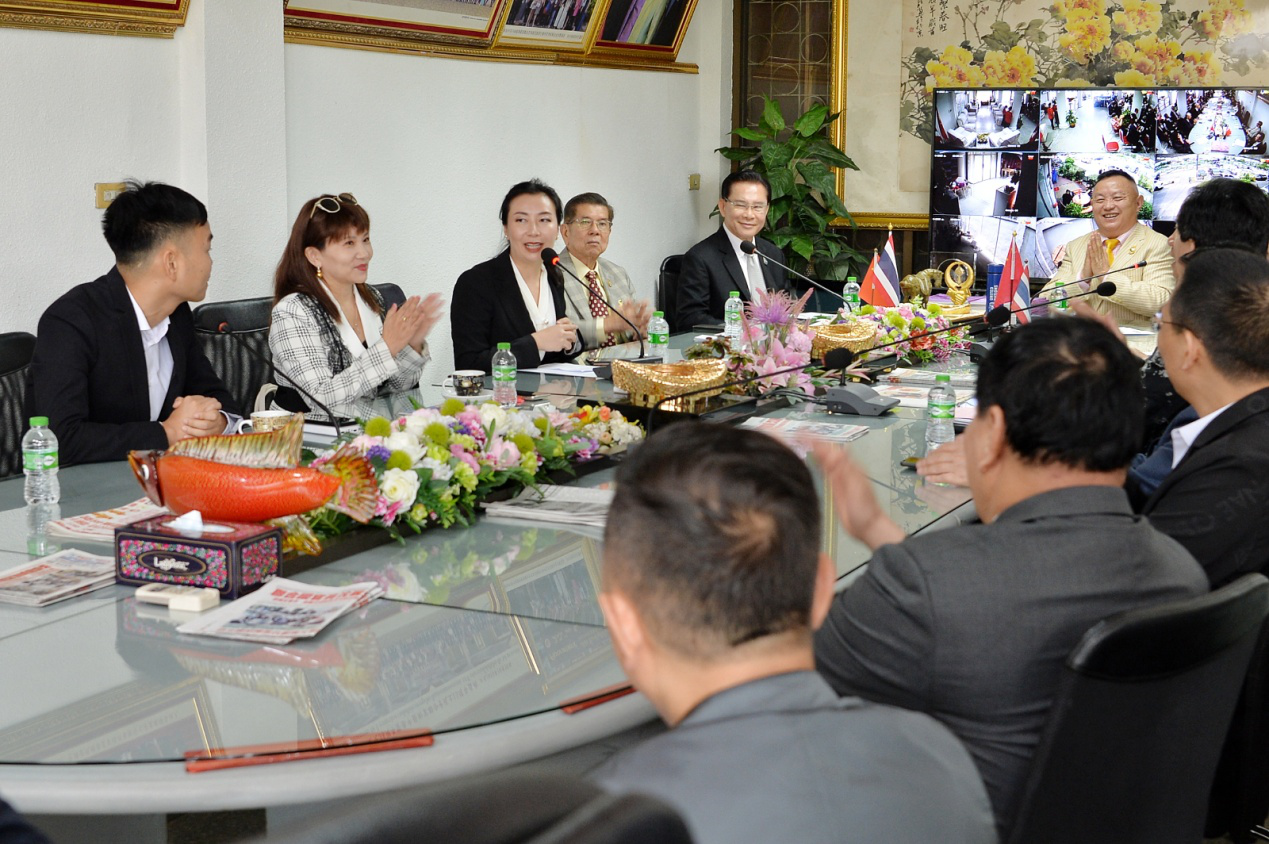 泰中艺术家联合会蔡义批会长为会谈致辞,向全球 商务考察团来访表示欢迎,盛赞 是中国的优秀市级商会,会员众多,实力雄厚,希望通过本次的访问,加深认识,共谋发展,共同来推动中泰友好关系和经贸合作。