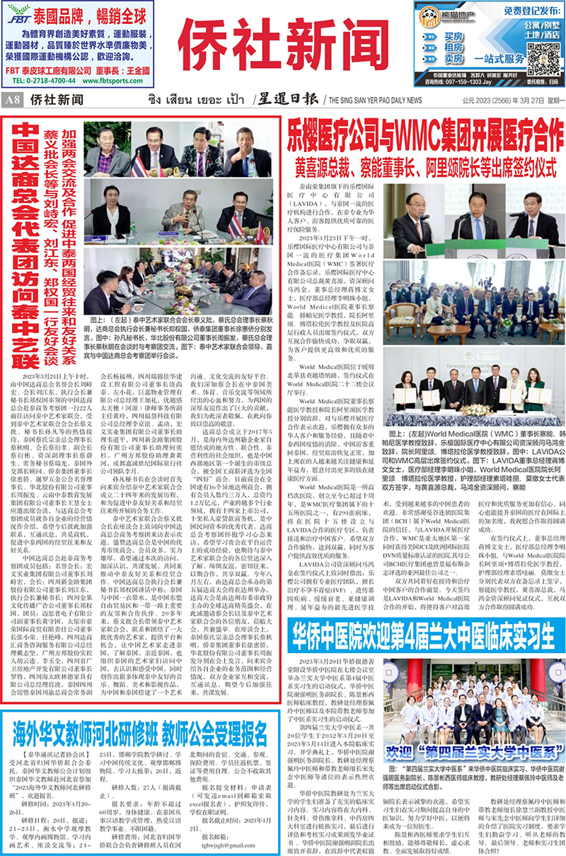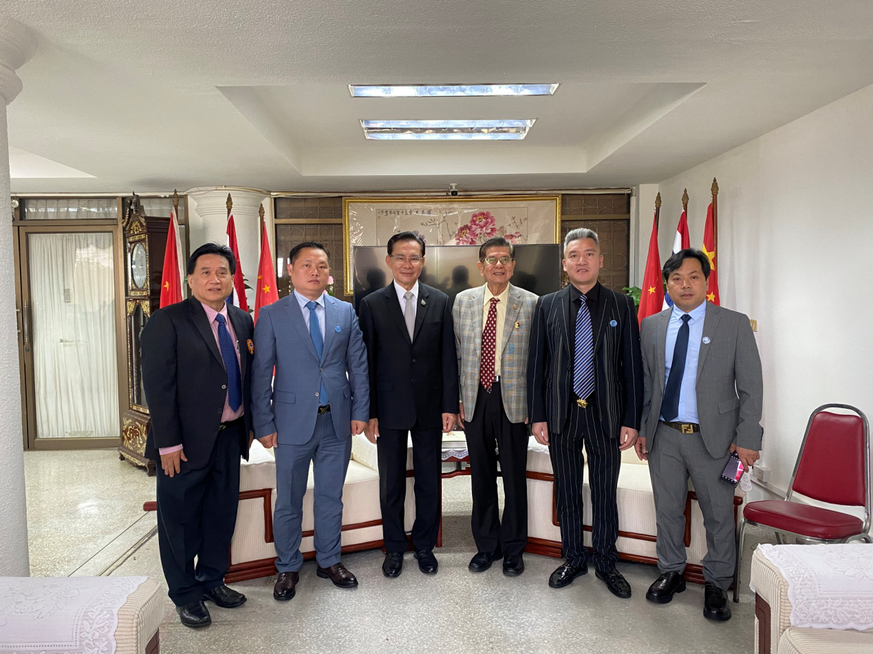 2023年3月24日上午,由全球 名誉会长刘峙宏、会长刘江东、执行会长兼秘书长郑权国率领的全球 赴泰商务考察团一行22人赴泰中艺术家联合会考察访问,受到泰中艺术家联合会会长蔡义批、秘书长孙凡等热情接待。双方展开友好深入的座谈交流,就各自企业的经营情况作介绍,希望今后彼此加强联系,互通讯息,共觅商机,促进中泰两国的经贸往来和友好关系。