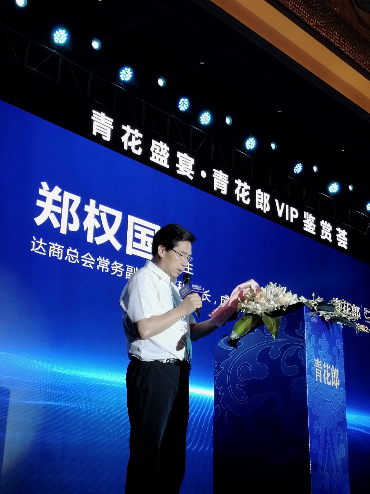 6月12日晚上18时,由 副会长单位四川品冠酒业携手郎酒集团共同举办的“青花盛宴暨端午节客户答谢活动”在成都万达瑞华酒店盛大举行。本次活动得到了成都市工商联、四川省异地商会、成都市各大商会的鼎力支持,成都市工商联主席温莉艳及各商协会会长、秘书长和嘉宾等共计350余人出席本次活动,一起品鉴郎酒高端酱酒,领略酱香郎酒的非凡品质。 执行常务副会长兼秘书长郑权国受邀参加了活动并致辞。