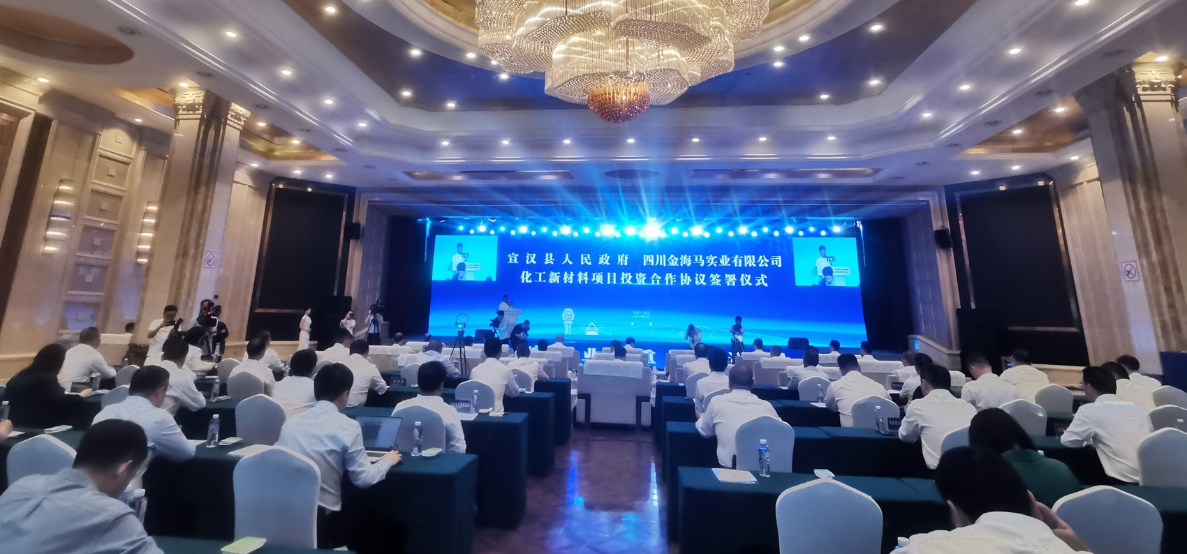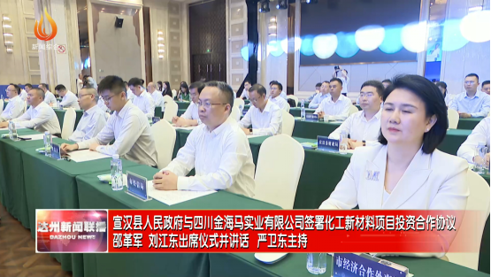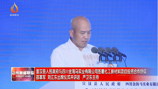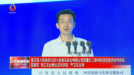 4月21日,宣汉县人民政府与四川金海马实业有限公司化工新材料项目投资合作协议签署仪式举行。达州市委书记邵革军, 会长、四川金海马实业有限公司董事长刘江东出席并讲话。省经信厅二级巡视员罗明,省经济合作局二级巡视员纪云文,四川新金路集团股份有限公司党委书记、总裁彭朗,集团副总裁成景豪出席。市委副书记、市长严卫东主持仪式。