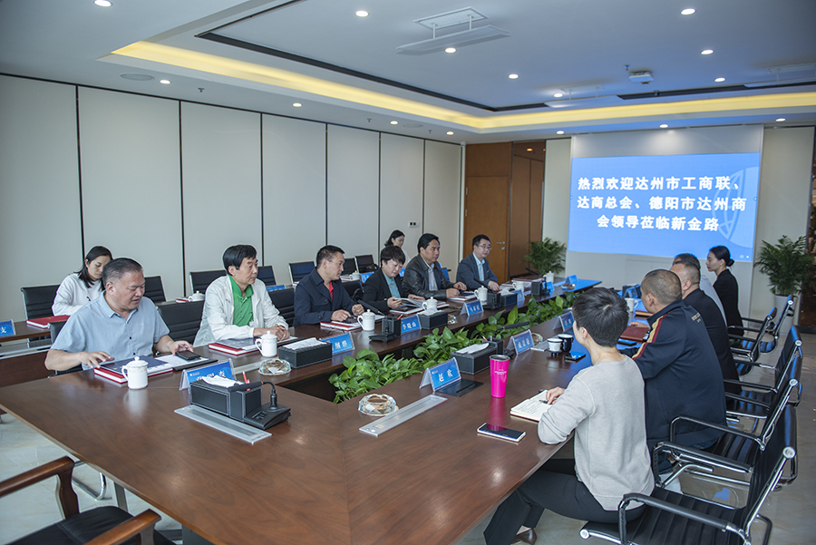 考察团一行首先走访调研了 会长单位、德阳达州商会名誉会长单位四川新金路集团股份有限公司。德阳达州商会会长李晓山、名誉会长孙军忠、秘书长蒲明森陪同调研。新金路集团党委书记、总裁彭朗率集团工作人员热情接待。