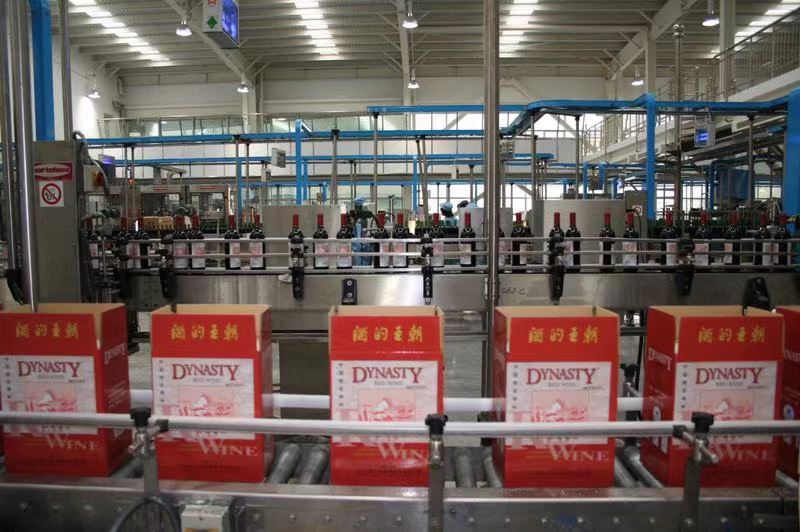 王朝公司的相关人员带领考察团参观了园区。灌装车间单线灌装量可达15000瓶/时;地下酒窖占地面积约5000平方米,位于王朝灌装车间地下深9米处,储有橡木桶七千余个,最大木桶容量5000升,是目前中国单体规模宏大、设施先进的葡萄酒窖。 参观结束后,王朝公司高层领导邀请考察团一行品鉴了赤霞珠、梅鹿辄、518干白、解百纳,并分享了红酒的相关知识。