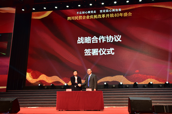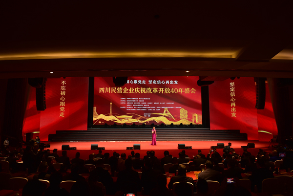 为庆祝改革开放40周年,深入学习贯彻习近平总书记在民营企业座谈会上重要讲话和四川省民营经济健康发展大会精神,推动全省民营经济高质量发展,12月7日,由四川省委统战部、四川省工商业联合会主办,主题为“不忘初心跟党走、坚定信心再出发”的四川民营企业庆祝改革开放40年盛会在成都隆重举行。