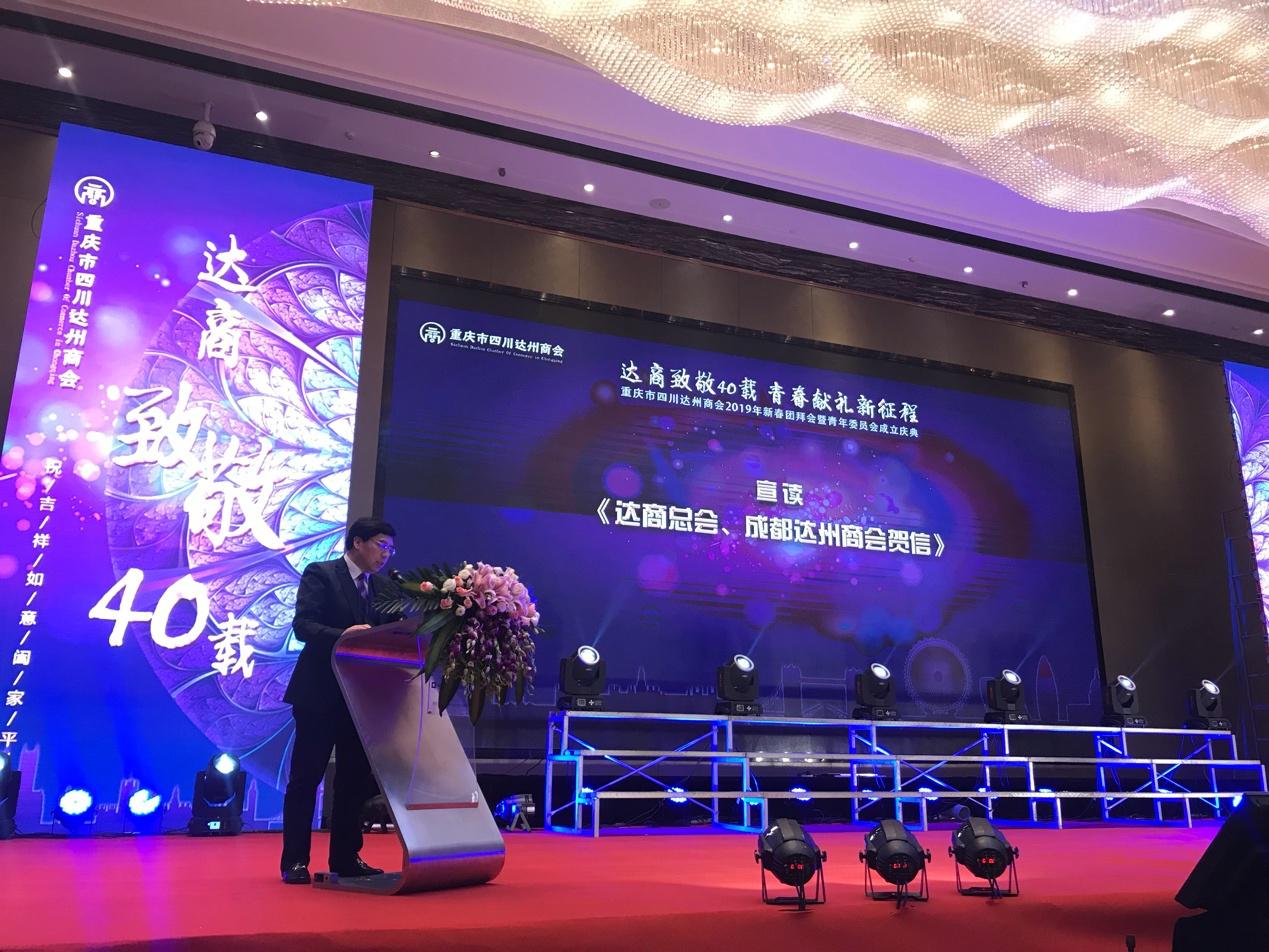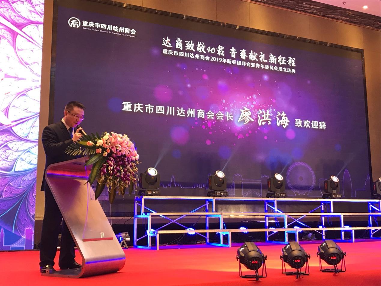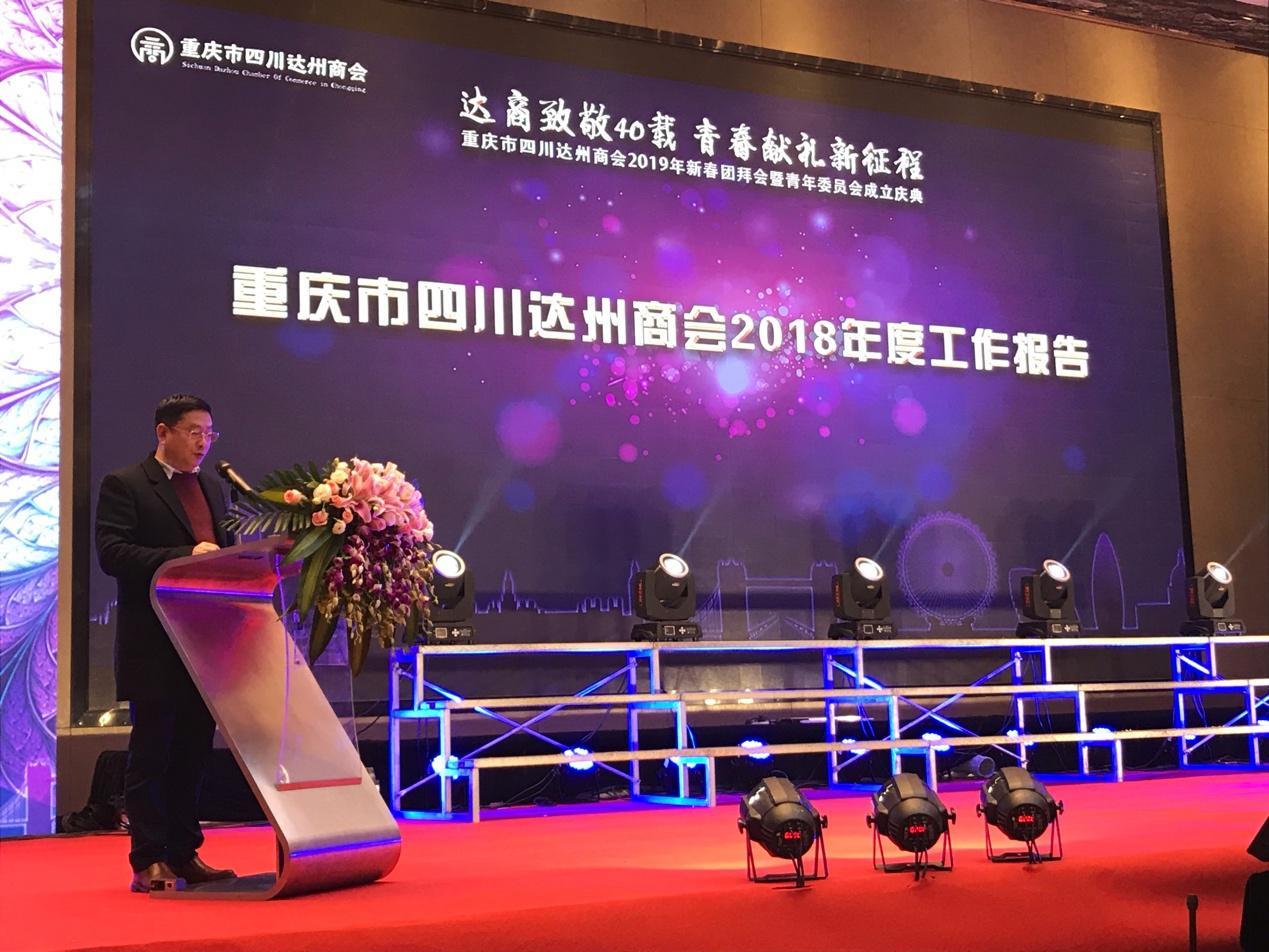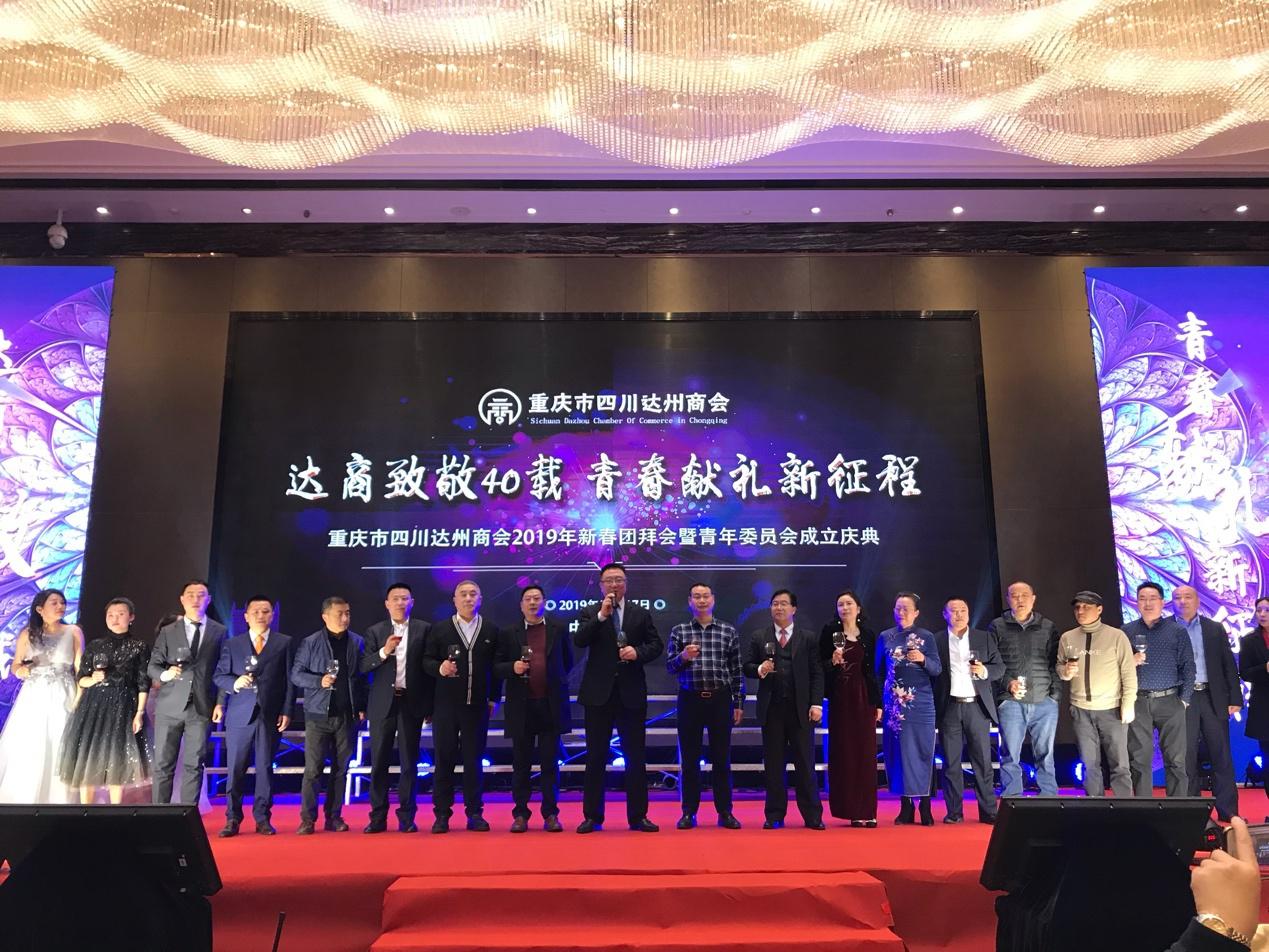 2019年1月17日,重庆市四川达州商会“2019年新春团拜会暨青年委员会成立庆典”在重庆市华宇温德姆至尊豪廷大酒店隆重举行。