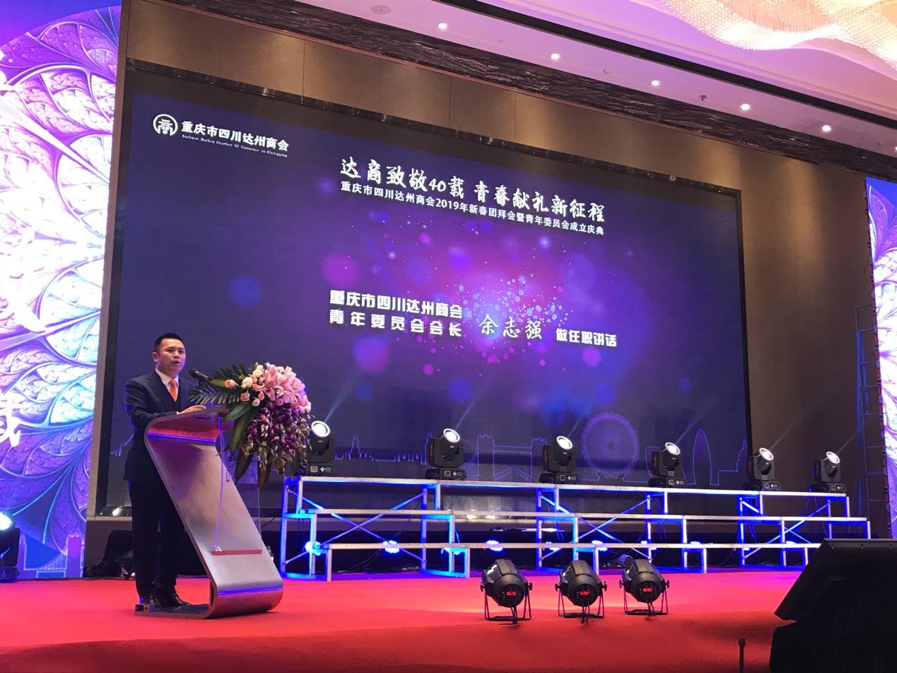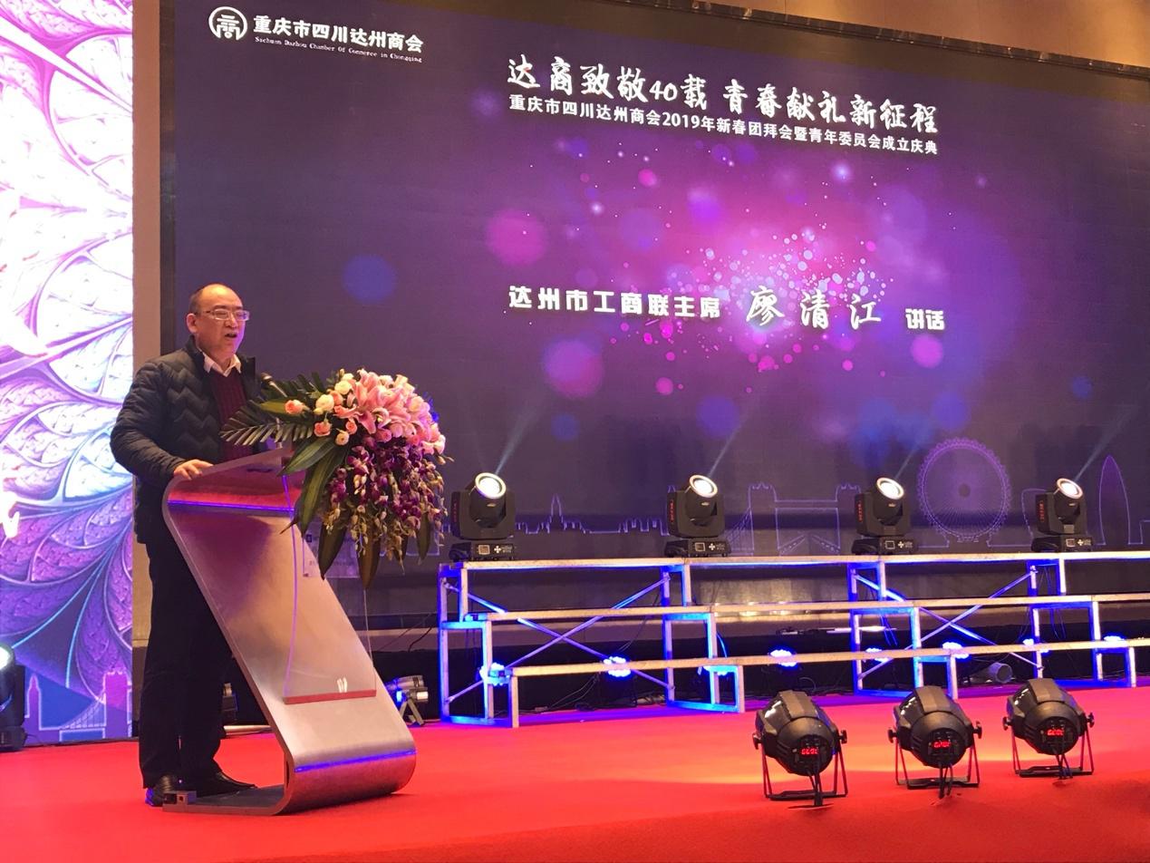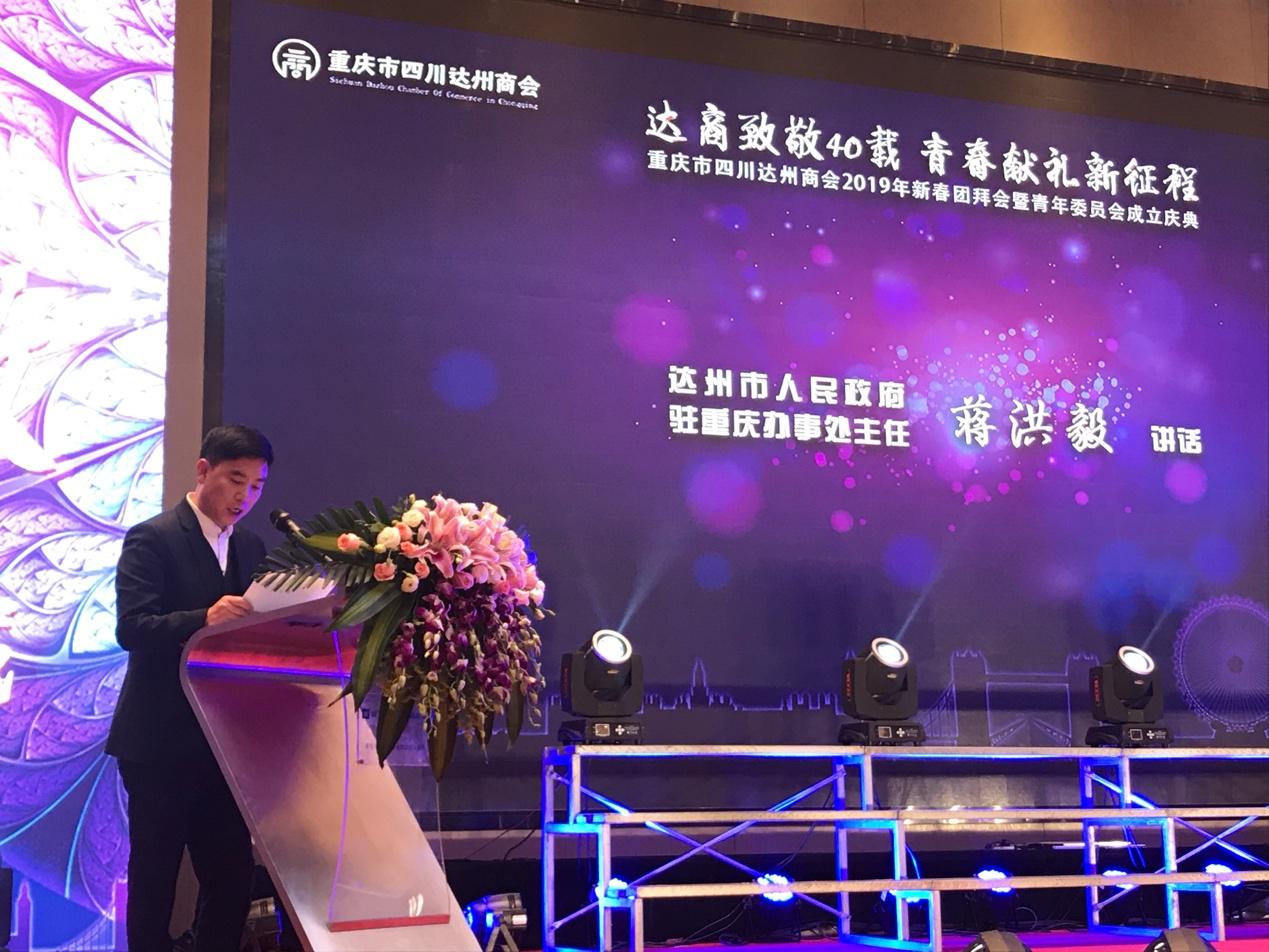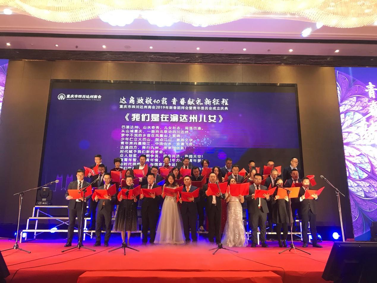 2019年1月17日,重庆市四川达州商会“2019年新春团拜会暨青年委员会成立庆典”在重庆市华宇温德姆至尊豪廷大酒店隆重举行。