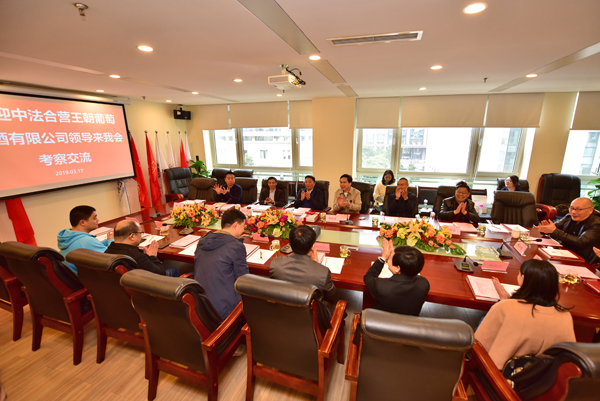 3月17日,中法合营王朝葡萄酿酒有限公司党委书记孙咏建、总经理李广禾,天津王朝酒业销售有限公司总经理刘军、副总经理宋磊率领王朝酒业考察团一行莅临