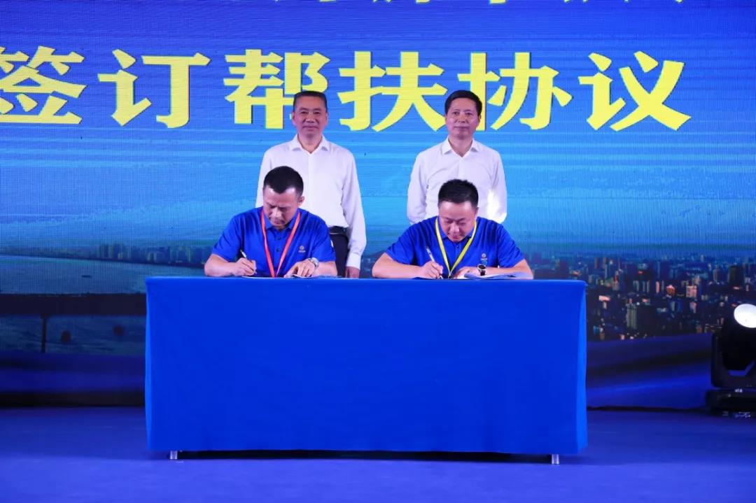 海南省达州商会理事长陈昌平与万源市铁矿镇白果坪村第一书记符华明签订帮扶协议领导陈泉、胥健共同见证