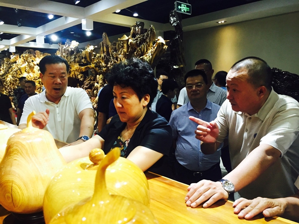 包惠书记一行前往宜华木业城,了解宜华集团发展历程和生产运营状况,并与宜华集团董事局主席刘绍喜进行了座谈。