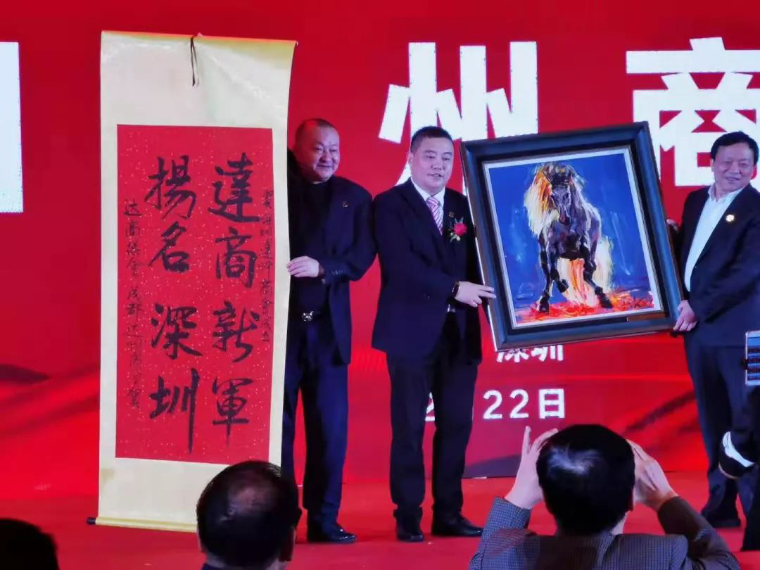 会长刘峙宏、执行会长何天涛现场赠与深圳市四川达州商会字画